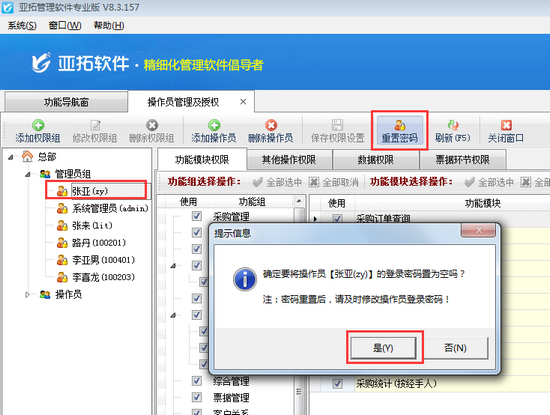 亞拓管理軟件、亞拓倉庫管理軟件、紅管家送貨單軟件、紅管家財務出納記賬系統、紅管家票據打印軟件等都可以實現多個操作員登錄使用軟件的功能,如果使用過程中把操作員密碼忘了應該怎么辦?下邊我們就具體以亞拓管理軟件專業版為例進行詳細介紹如何重置操作員密碼。 重置操作員密碼需要以系統管理員登錄軟件,如圖1所示:&