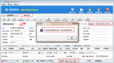 亞拓管理軟件、信管飛送貨單軟件、信管飛倉(cāng)庫(kù)管理軟件等都支持開(kāi)業(yè)務(wù)單據(jù)。軟件為了區(qū)分業(yè)務(wù)單據(jù),支持開(kāi)單自動(dòng)生成單據(jù)編號(hào)。為了避免操作員登錄軟件修改單據(jù)編號(hào),軟件支持在操作員權(quán)限中設(shè)置不允許操作員修改單據(jù)編號(hào)。 以亞拓管理軟件專業(yè)版為例,示范下如何設(shè)置操作員不能修改單據(jù)編號(hào)的權(quán)限。在功能導(dǎo)航窗選擇“系統(tǒng)管