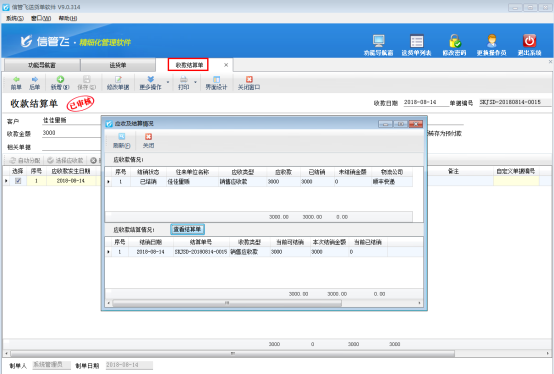 信管飛送貨單軟件開過送貨單后,會自動生成這個送貨單對應的應收款信息,后續收款時可以對應收款進行收款結算。如何快速查看一個送貨單的應收款及結銷情況呢?下面我們演示一下操作步驟。 打開一個送貨單,點擊“更多操作”—》“查看應收款及結銷情況”,系統會彈出“應收及結算情況”窗口,如下圖1、圖2所示:圖1圖2 &