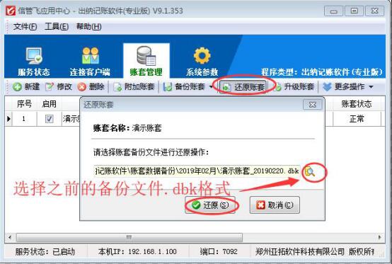 亞拓旗下所有軟件安裝完成后,數(shù)據(jù)備份均保存在安裝軟件目錄下的賬套文件備份文件夾中,如需要更換電腦使用,需要把最近日期的備份數(shù)據(jù)復制到新的電腦上,在新的電腦上安裝好軟件,在應用中心程序中對之前的賬套備份數(shù)據(jù)進行還原操作,就可以把之前的所有數(shù)據(jù)同步到這個電腦上。 本文章以信管飛出納記賬軟件為例,演示下如何還原賬套備份。