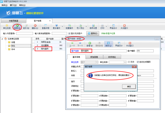 信管飛送貨單軟件支持新增客戶信息,為了避免增加的客戶信息出現(xiàn)重復,軟件支持設置參數(shù)不允許客戶名稱重復。 登錄軟件,在“系統(tǒng)管理”—》“系統(tǒng)參數(shù)配置”—》“業(yè)務參數(shù)”中的“數(shù)據(jù)可否重復參數(shù)”把“往來單位名稱可重復”的勾選符號取消,然后保存設置。如下圖所示:圖1 設置完成后,打開功能導航窗的“