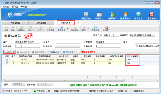 信管飛RMS軟件星光版、標準版、專業版都支持錄入客戶預付款,客戶預付款是客戶付定金給我們,在客戶實際發貨后會收回應收款,此時軟件收款結算中支持應收款可以抵消之前的預付款,本文以“信管飛RMS專業版”為例,示范下應收款如何抵消客戶預付款? 首先需要新增客戶的預付款,有兩種方式: &