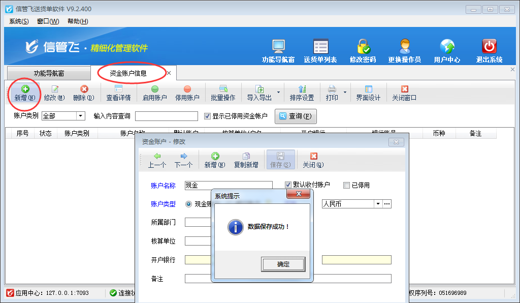 收款結(jié)算單用來登記收款信息(收款對象即客戶、收款賬戶、收款金額、經(jīng)手人等),并結(jié)銷應(yīng)收款記錄。部分用戶在剛開始使用送貨單軟件對軟件功能不熟悉,首次對應(yīng)收款進(jìn)行收款結(jié)算,錄入收款金額時(shí)會(huì)提示:默認(rèn)收付款資金賬戶不存在,請先設(shè)定默認(rèn)收付款資金賬戶!(如下圖所示)無法繼續(xù)填開收款結(jié)算單。 這種情況是因?yàn)樵谙到y(tǒng)內(nèi)沒有維護(hù)收款賬戶導(dǎo)致