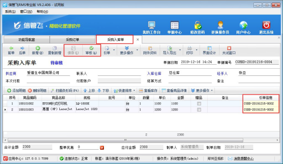 信管飛RMS軟件是集“采購管理、銷售管理、庫存管理、往來賬管理”一體的進(jìn)銷存軟件,軟件可引用訂單生成對應(yīng)的采購入庫單和銷售出庫單。軟件默認(rèn)引用訂單需要訂單處于審核狀態(tài),否則引用不了(如下圖所示),有的客戶存引用未審核的訂單,本文示范下如何設(shè)置? 在功能導(dǎo)航窗點(diǎn)擊“系統(tǒng)管理”→“系統(tǒng)參數(shù)配置