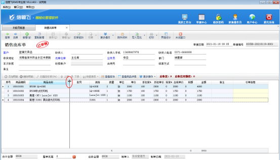 信管飛RMS、信管飛倉(cāng)庫(kù)管理軟件、信管飛送貨單軟件、信管飛出納記賬軟件都可根據(jù)用戶自身業(yè)務(wù)特點(diǎn)進(jìn)行自定義單據(jù)內(nèi)容的顯示寬度,以滿足更多用戶的需求。下面我們以信管飛RMS專業(yè)版的銷售出庫(kù)單為例介紹一下單據(jù)內(nèi)容顯示寬度的設(shè)置方法。方法一:通過(guò)界面設(shè)計(jì)調(diào)整單據(jù)內(nèi)容的顯示寬度 登錄軟件,在功能導(dǎo)航窗點(diǎn)“銷售管理”—》“銷售出庫(kù)單”即