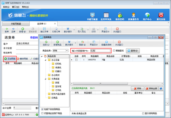 信管飛RMS、信管飛倉(cāng)庫(kù)管理軟件、信管飛送貨單軟件開(kāi)單時(shí)都支持選擇系統(tǒng)內(nèi)已錄入的商品信息,進(jìn)行快速選擇商品來(lái)開(kāi)單。開(kāi)單時(shí),選擇商品窗口,可以根據(jù)商品編碼、商品名稱、規(guī)格、條形碼等信息查詢商品,如果“商品擴(kuò)展信息”錄入了數(shù)據(jù),我們也可以根據(jù)“商品擴(kuò)展信息”進(jìn)行查詢。下面我們以信管飛送貨單軟件為例介紹一下新開(kāi)送貨單開(kāi)單選擇商品時(shí),根據(jù)“商品擴(kuò)展信息”查詢商品的操作