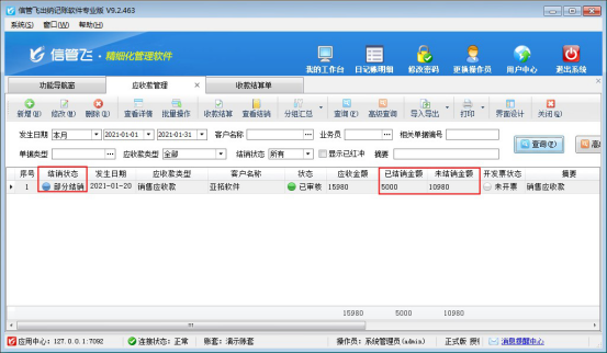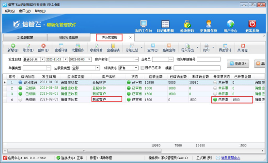 此文章演示視頻觀看鏈接:出納軟件銷項(xiàng)發(fā)票如何關(guān)聯(lián)應(yīng)收款演示視頻 信管飛出納專業(yè)版支持直接登記應(yīng)收應(yīng)付款,并且支持對(duì)登記的應(yīng)收應(yīng)付款開(kāi)對(duì)應(yīng)的進(jìn)銷項(xiàng)發(fā)票功能,對(duì)已開(kāi)發(fā)票的應(yīng)收應(yīng)付款,在應(yīng)收應(yīng)付款管理界面可顯示開(kāi)票狀態(tài),方便后期查詢。 示范下銷項(xiàng)發(fā)